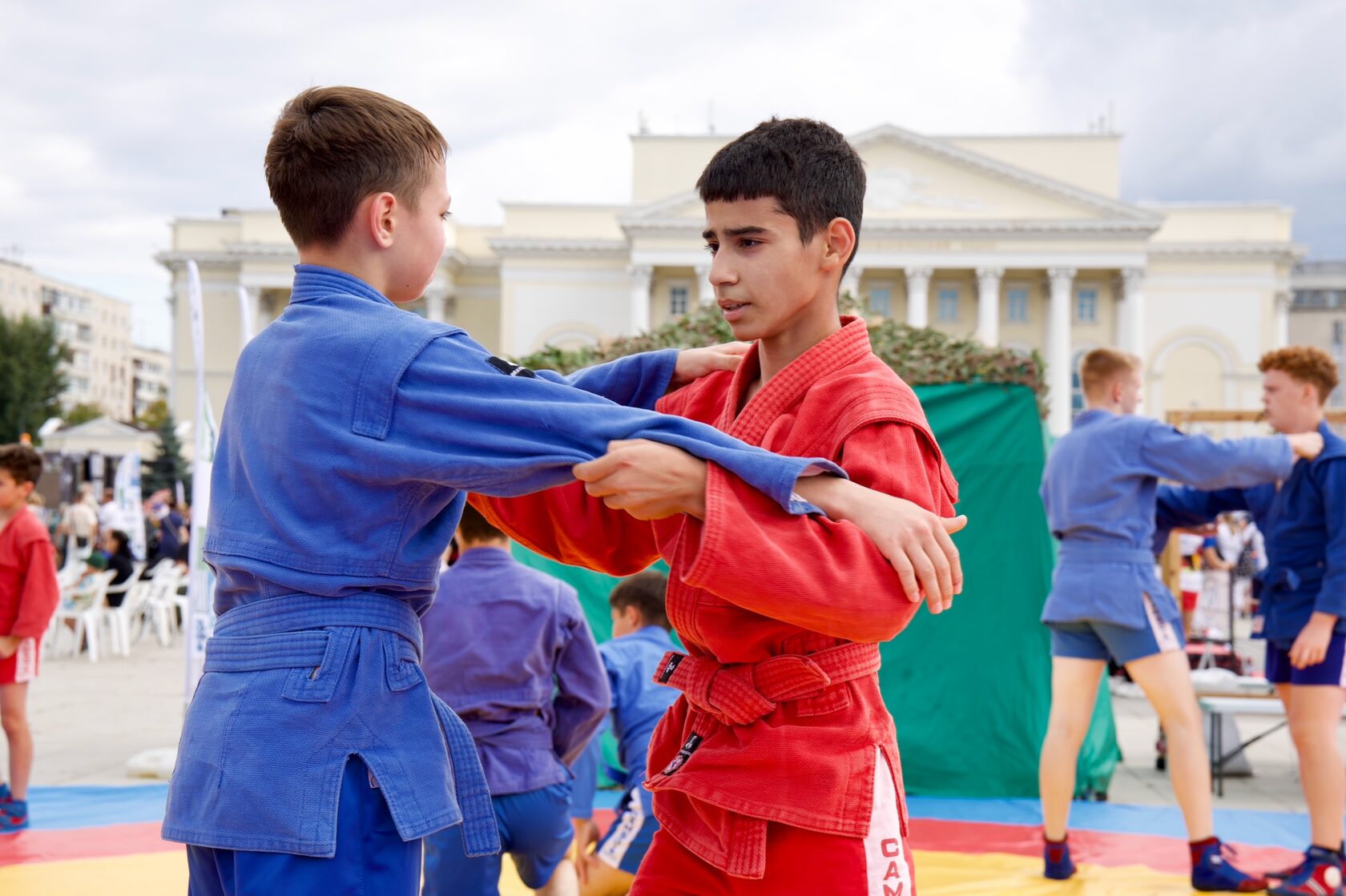 Программа праздника включала разнообразные спортивные активности. На площадке самбо прошли: